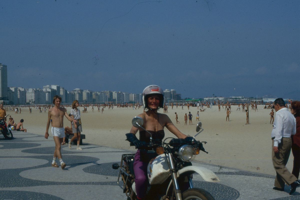 La rencontre avec Anne-France se fait en plusieurs étapes, car il est bon de revenir vers ce qui semble parler aux racines, vers des femmes d’exception qui ont porté une génération, un souffle de liberté comme il n’en était que peu à l’époque. Comme un chocolat fin qu’on découvre, qu’on décachette et qu’on déguste, lentement, avec satisfaction et envie. Une surprise enveloppée de malice, de douceur et en même temps de caractère bien trempé. Cette belle amazone de 78 printemps fut la première femme à faire le tour du monde en solo en 1973 sur une petite cylindrée, une 100 cm3 Kawasaki 1 cylindre 2 temps 5 vitesses, idées larges et cheveux aux vents. Un premier périple en solitaire qui la mena de Montréal en Alaska puis au Japon, à Delhi, Téhéran, Kaboul et enfin la Turquie et retour par l’Est de la France.